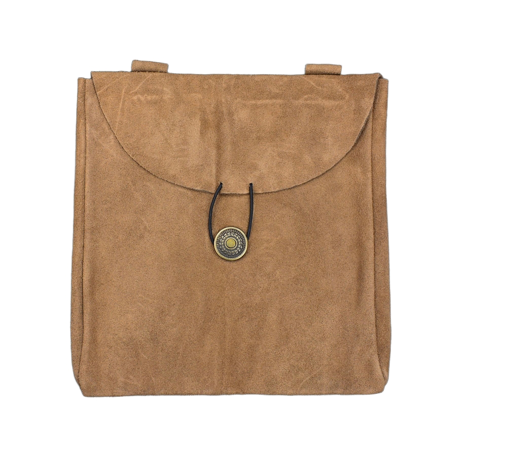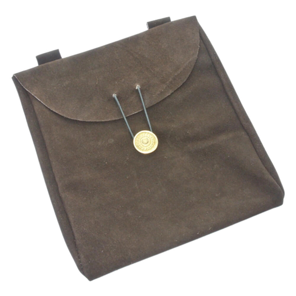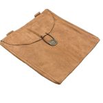 When walking around a Renaissance faire or engaging in a battle, you need a place to store those loose items and this is where the Large Brown Suede Leather Belt Pouch comes in handy. This simple, yet stylish, accessory is crafted from stitched suede leather and secures with a leather cord over a brass button. For convenient carrying on a belt, integrated belt loops have been included. Practical and complimentary to your period ensemble, this pouch is great for costumes and re-enactments. Length and Height: 9 1/4″ x 9 1/2″