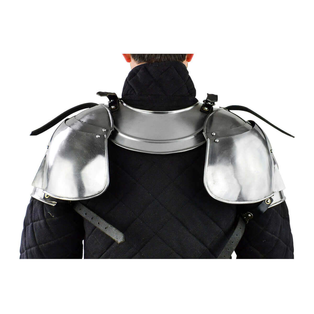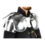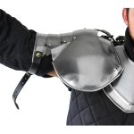 Please Note: The photos show the armor being used with a gorget – a gorget or breastplate is needed to anchor these pauldrons into position for proper functionality. Neither a gorget or breastplate is included and these are shown for demonstration purposes only. These additional components are available separately. The last several photos show the pauldrons on their own to show what is included.