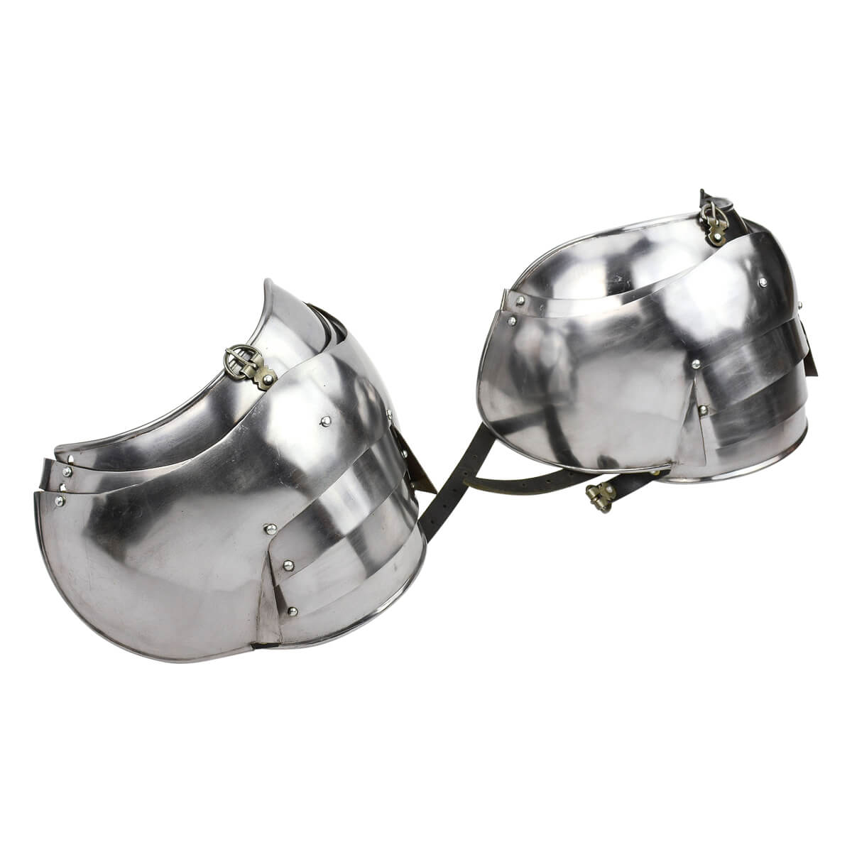 This pair of Late Medieval Pauldrons are crafted from 16 gauge steel and are constructed with swivel and slotted rivets for good articulation which ensures a wider range of free movement for the wearer. Many of the plates slide against each other with easy movement and the front of the armor even has slotted rivets which allow for the corner of the armor to compress when tighter arm movement is required.