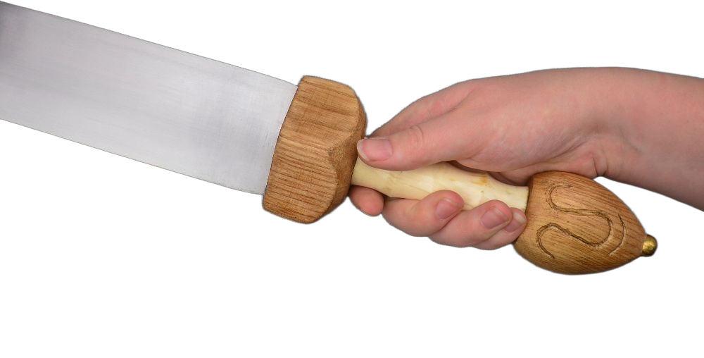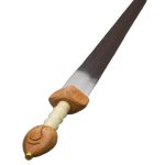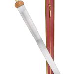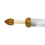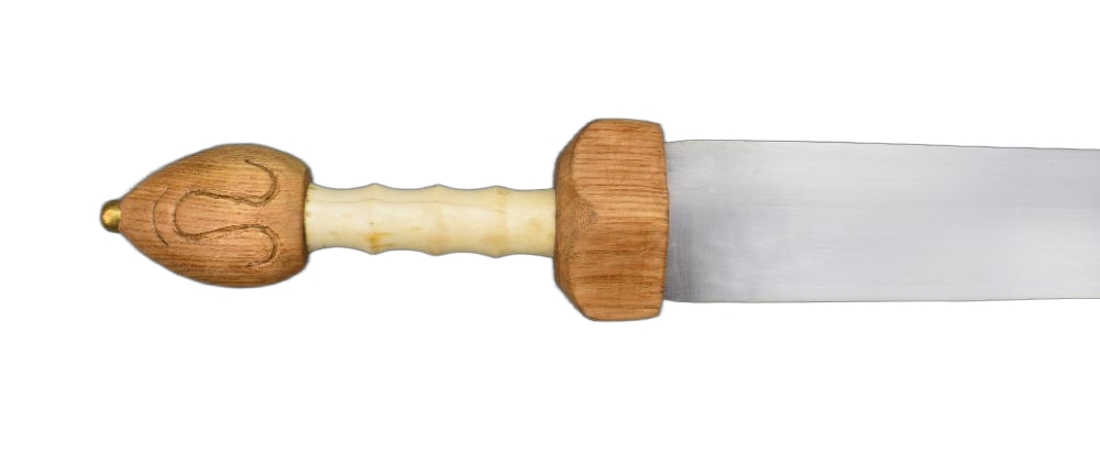 This longer-bladed form of the Roman sword became favored in the later Empire to fill the need for a longer sword for mounted cavalrymen. Based on historical examples this reproduction has a blade of high carbon steel and a hilt of wood which is finished with a grip of polished bone. Included is a wooden scabbard with brass trim and fittings. The brass suspension sling allows for you to hang and wear this sword with your own sword baldric or belt.