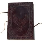 If you are looking for a special place to record your musings and personal thoughts, then the Leather-Bound Celtic Heart Guardian Eagles Journal is sure to please. You’ll love writing in this beautiful handmade book featuring a thick leather cover which holds approximately 220 textured pages (counted front and back) which are bound with stitched cordage. The real highlight of this piece, however, is the embossed Celtic heart and guardian eagle on the cover. In addition, a leather tie has been included for secure closure. Whether you are giving this journal as a gift or using it for your own ponderings, this promises to be a precious keepsake.