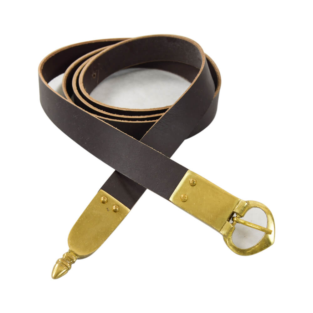 The Leather Norman/Medieval Belt is the perfect way to top off your Middle Ages look. It is constructed from high quality leather with a brass buckle. Simple, yet stylish, this accessory will be a great addition to your wardrobe and will compliment a doublet or other medieval garments nicely. 58 1/4″ Long x 7/8″ Wide