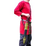 The leather for this baldric is supple and thick and the belt is adjustable with its brass buckle. It can be further adjusted to size by adding your own holes if needed. A flat-head screwdriver is needed to unfasten the brass rivet-screws that allow the scabbard loops to be fitted around a scabbards hanging rings and to securely fasten them closed.