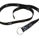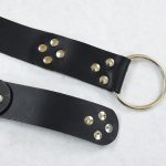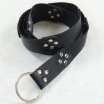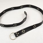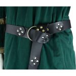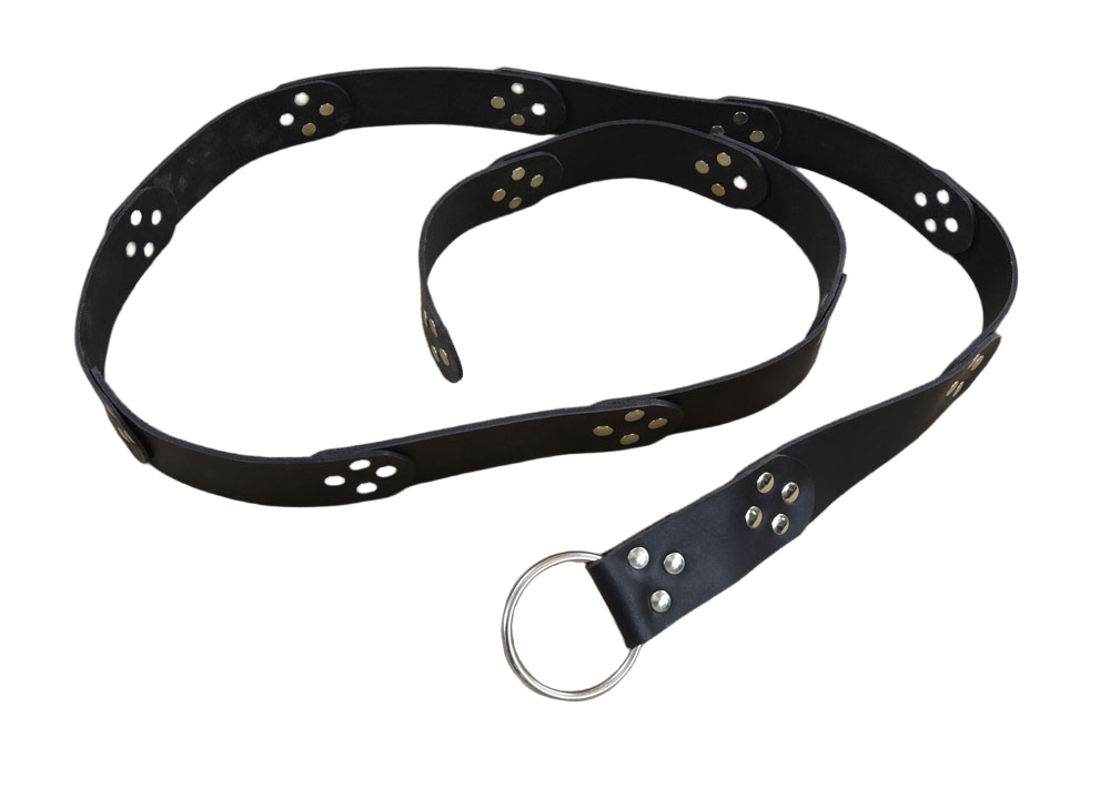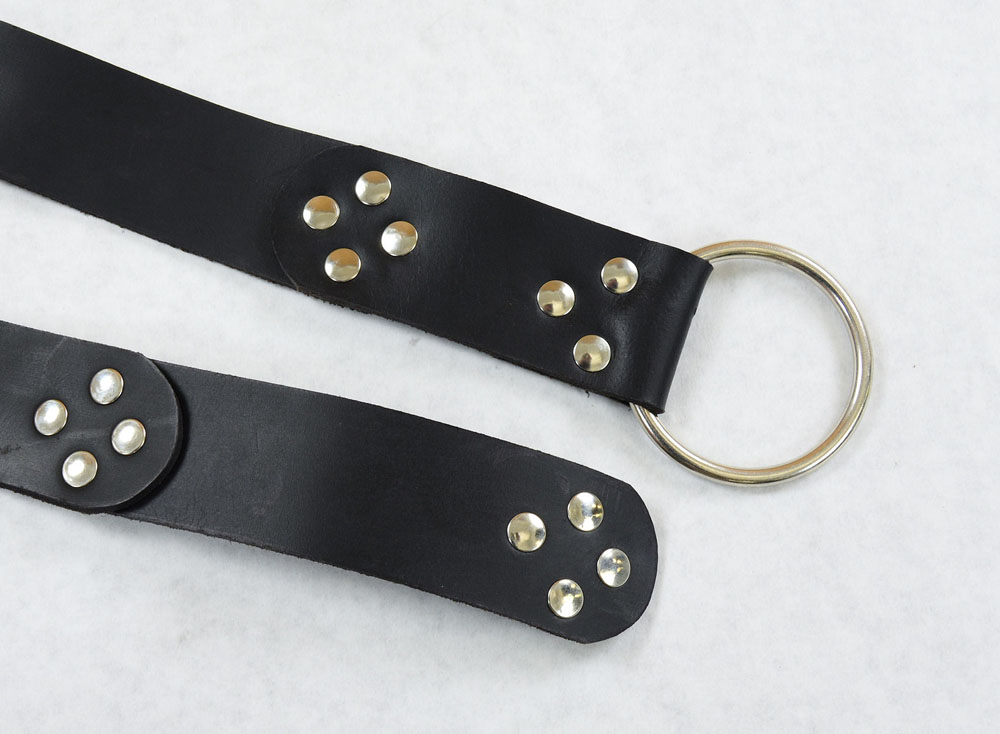 This belt is constructed from leather plates, a steel ring buckle and steel rivets.