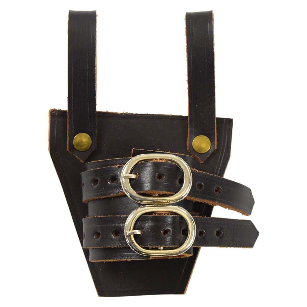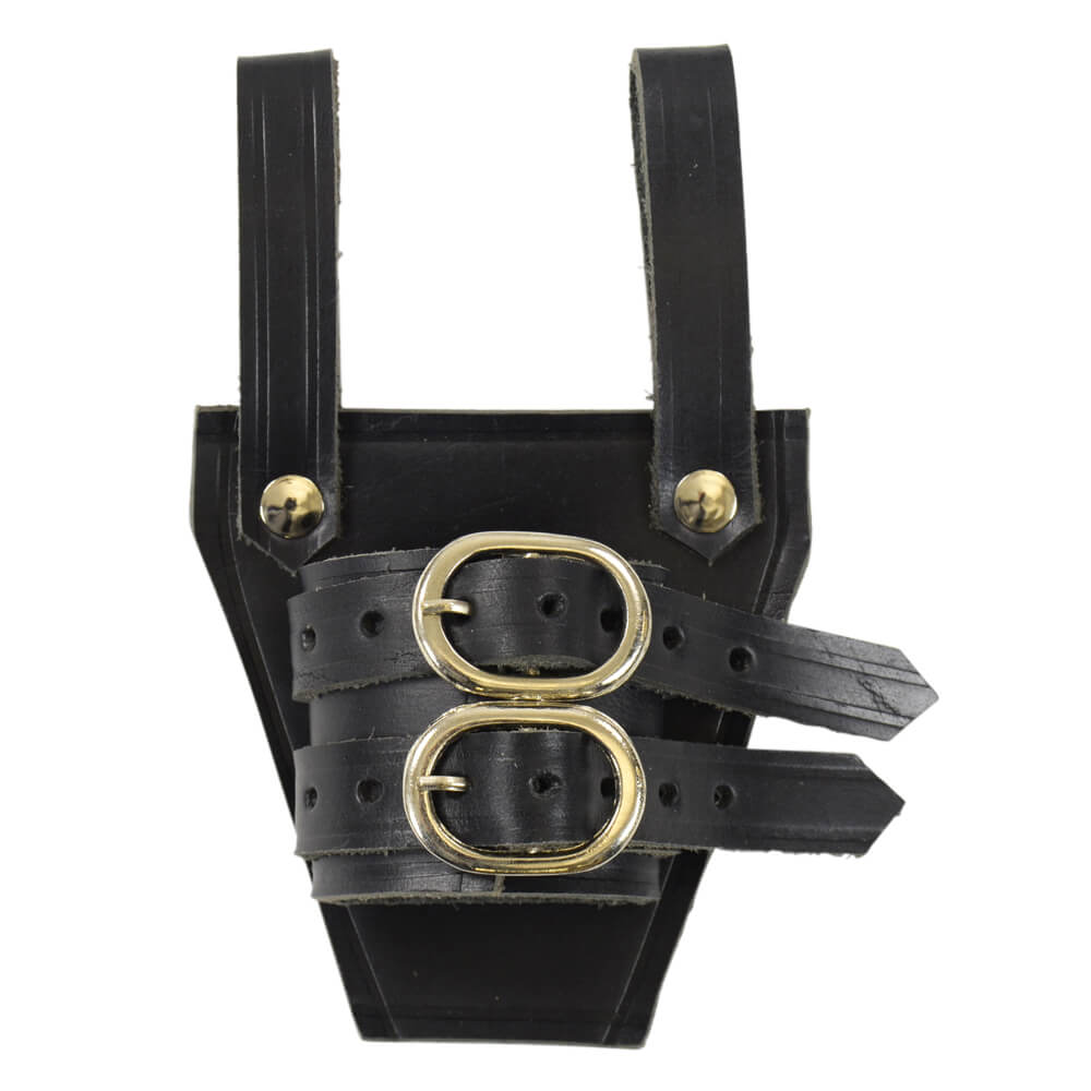 The Leather Sword Frog is the perfect accessory to ensure convenient carrying of your weapon as you charge into battle. Frogs were one of the earliest ways of carrying a sword, axe, and mace and proved to be quite effective. With authentic design, this piece is constructed from riveted top quality leather and features two adjustable steel buckles for sizing. Great for costumes and re-enactments. 6 3/8″ Tall