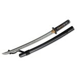 The Lion Dog Wakizashi from Paul Chen of Hanwei features an O-Kissaki blade of our own high-alloy HWS-1S steel, which combines superior performance with an outstanding O-choji hamon. This steel is made in Hanwei’s new factory, with high-tech equipment, producing a very pure advanced-metallurgy blade with the best edge-holding capability and resilience of any blade ever produced by Hanwei. The outstanding performance characteristics of blades forged from HWS-1S steel derive from a combination of the careful selection of alloying elements and a complex processing procedure, basically involving the manipulation of the steels carbon content across the blade section. This results in a very tough and resilient blade with a hard, highly abrasion-resistant edge.