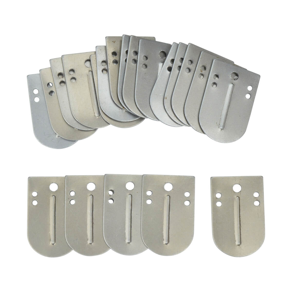 This set of 20 scale armor pieces are ready to be used in your next armor crafting project. Each one is made from 22 gauge steel and have pre-drilled holes to allow you to rivet, sew or lace them onto a leather or thick padded cloth backing. Smaller side holes allow indidivual scales to be sewn or laced to one another for additional reinforcement.