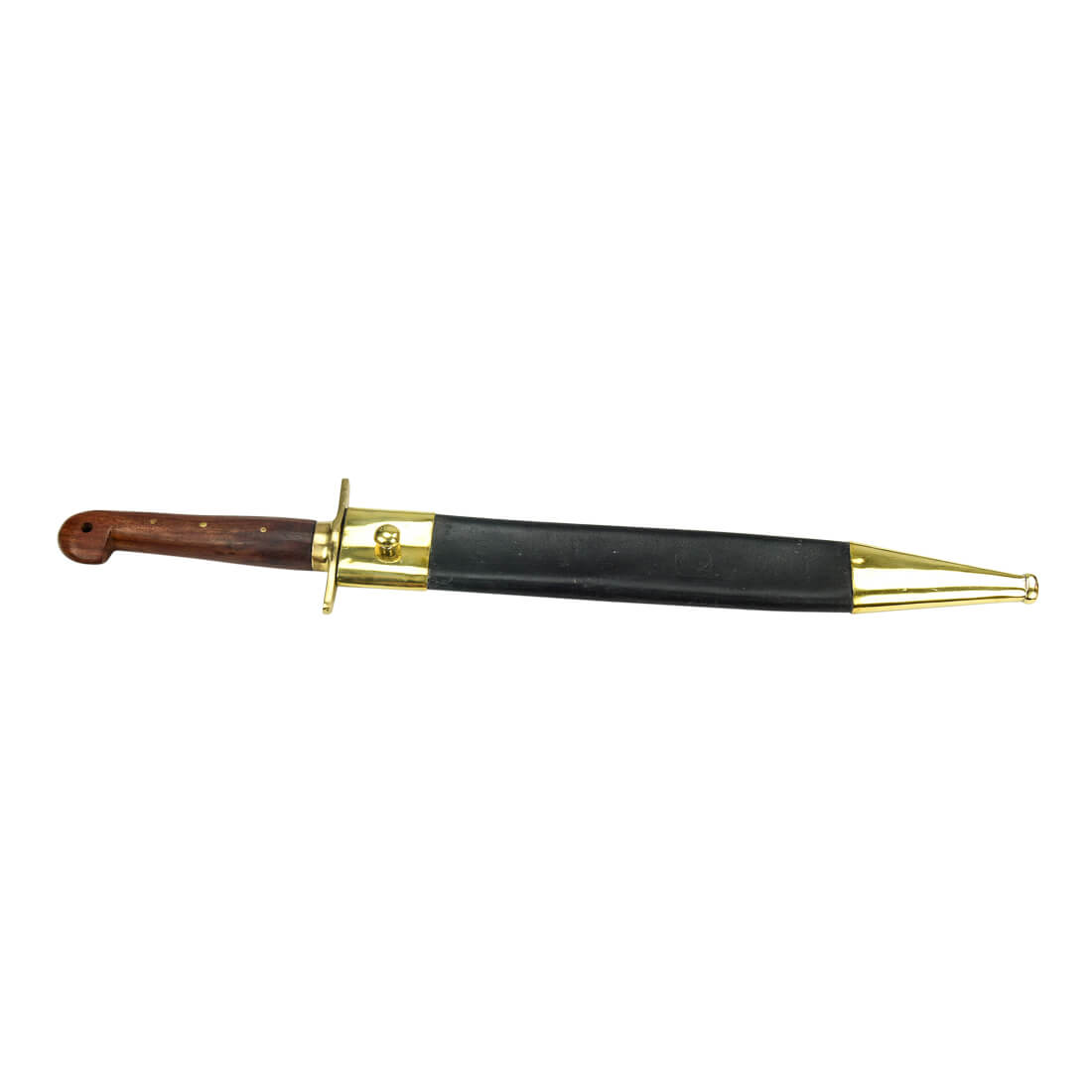 The scabbard is leather with brass fittings.
