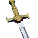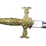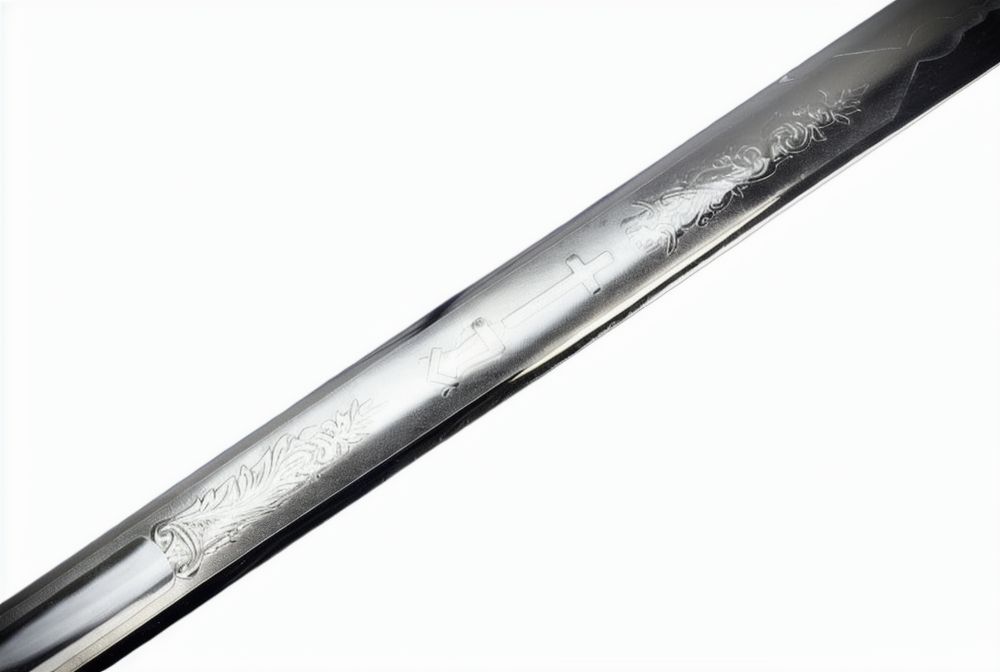 This Freemasons Ceremonial Sword has a mirror-polished high carbon steel blade which is richly adorned in etched Masonic imagery on both sides. Its hilt is entirely plated with gold.