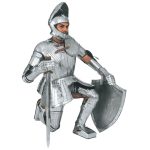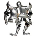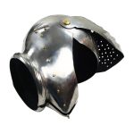The full set of Maximilian armor is constructed from 18 gauge steel. The armor can be worn, but its movement can be restricted and not optimal for stage and sport combat where greater mobility is required. It can function as a display armor with some modifications. A set of leather straps and steel buckles fit the armor to the body or stand. The armor includes a helmet, torso armor, arm and leg armor and gauntlets.