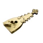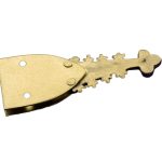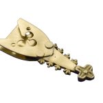 This belt chape fitting, fashioned in the High Medieval style, is cast from solid brass,a material favored in the period for its durability and resistance to corrosion. The piece features two brass plates securely riveted onto the main body, a common technique used by medieval craftsmen to reinforce the chape and provide added decoration. Designed to be attached to the tip of a custom leather belt, it includes pre-drilled holes to accommodate rivets or stitching, allowing for a sturdy and lasting fit. While the chape itself is ready for mounting, additional hardware such as rivets or thread must be sourced separately.