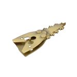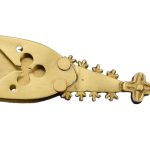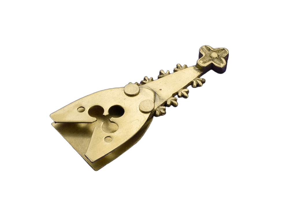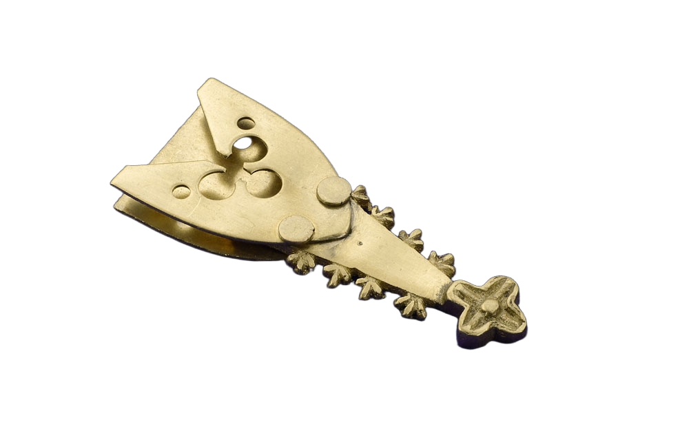 Fun fact: Medieval belt chapes often served not only a practical function by protecting the leather from wear but also acted as a subtle indicator of the wearer’s status and wealth, with designs ranging from simple shapes to intricate insets like the clover motif found on this fitting.