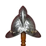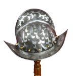 This medieval helmet is a fine hand-etched Morion helmet, from the 16th century, possibly from Brunswick. The nobility often had their Morion’s richly decorated, and etching is one of those versions.