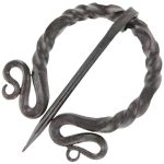 The brooch emerged from the Roman clasp and was widely popular during the Middle Ages as a closure for heavy garments. Recreating the traditional style with a touch of elegance comes the Medieval Dress Cloak Pin Pennanular Renaissance Brooch. This forged steel accessory is a true beauty. Sandwiched between two wavy swirls is the pin, which can be worn to fashion a loose or tight fastening. The piece is accented by ornate twists and spirals that will surely compliment any ensemble.