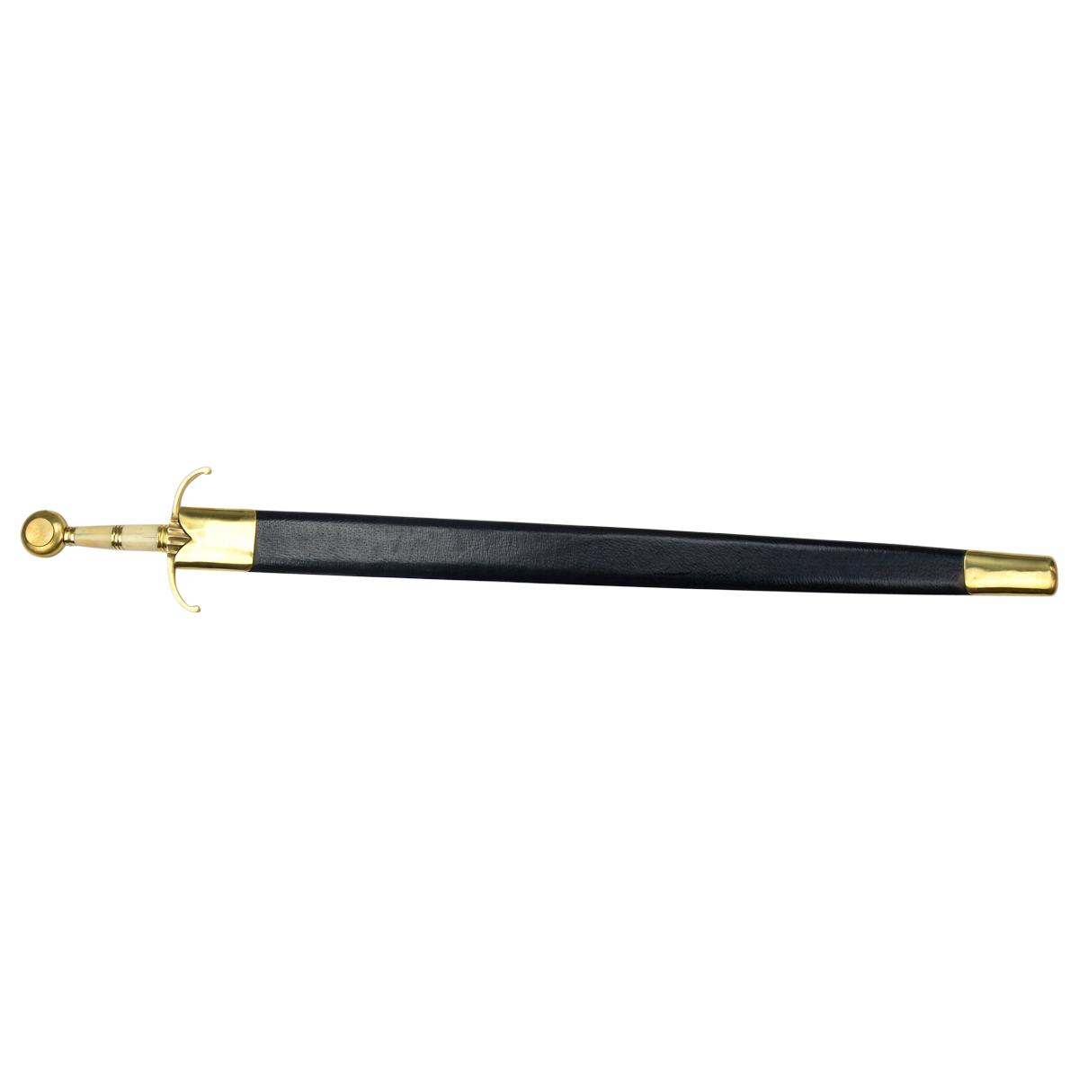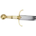 The Medieval Guingate Sword comes in honor of the battle between Louis and the Netherlands. Featuring a high carbon steel blade and has a brass pommel and guard. Based on historicaly authentic design, this piece is perfect for reenactments, costumes, and collections.