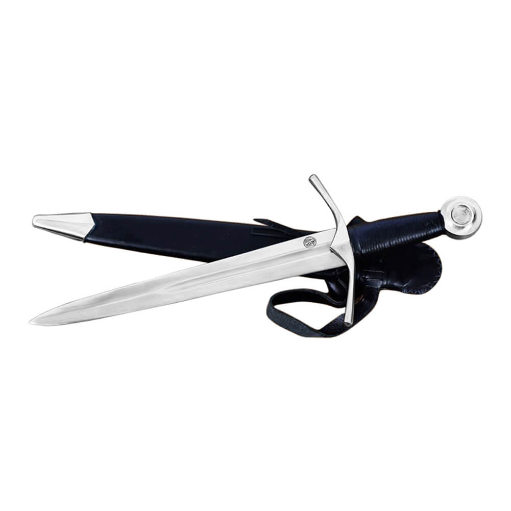 This is the companion dagger to the Medieval Knight dagger found in the second sword gallery. The blade is forged from 1060 high Carbon Steel and Tempered to a Rockwell of 53.