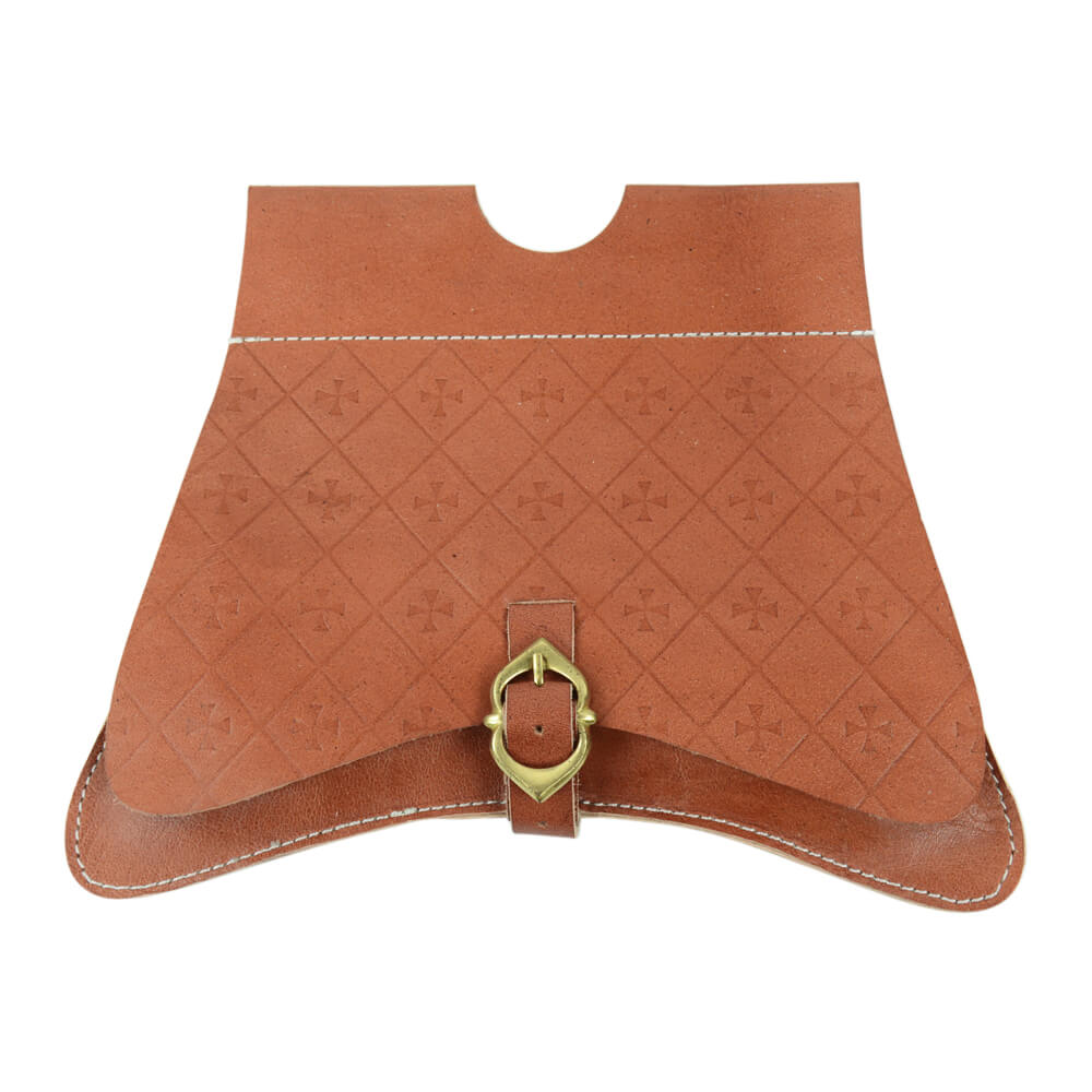 When walking around a Renaissance faire or engaging in a battle, you need a place to store those loose items and this is where the Medieval Leather Belt Pouch with Embossed Crosses comes in handy. Beautifully handmade from stitched leather, this accessory is highlighted by a lovely embossed design on the flap. It secures with a brass buckle and an integrated belt loop enables hanging on a small belt. With period flair and true style, this pouch will be practical and one you’ll want to bring with you time and time again. 9 3/4″ x 7″