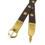 The Medieval Leather Belt with Brass Rosettes is the perfect way to top off your Middle Ages look. It is constructed from high quality leather with a brass buckle and highlighted by brass fittings, which give it a High Middle Ages accent. Simple, yet stylish, this accessory will be a great addition to your wardrobe and will compliment a doublet or other medieval garments nicely. Overall Length: 59″