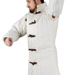 Unlike other gambesons, this one is not so thick as to make it stiff. The padding is thin enough to allow it to have a degree of flexibility similar to a thick coat.