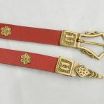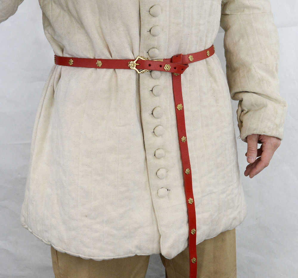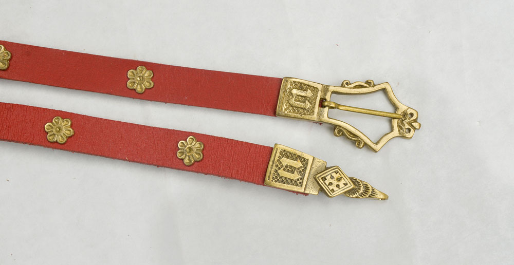 This Medieval Leather Belt is made from thick leather and completed with a solid brass buckle and chape and further embellished with brass studs all fittings are sturdily riveted into the leather.