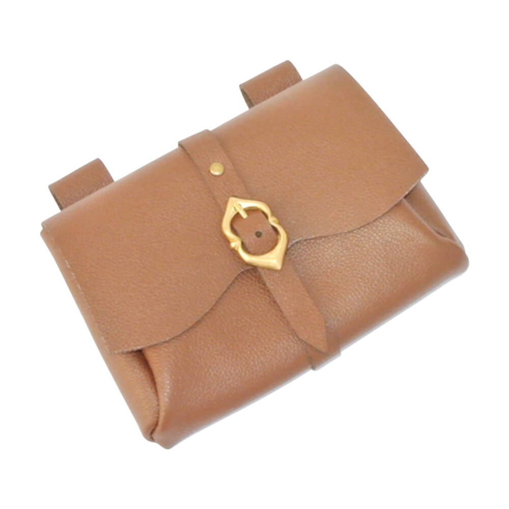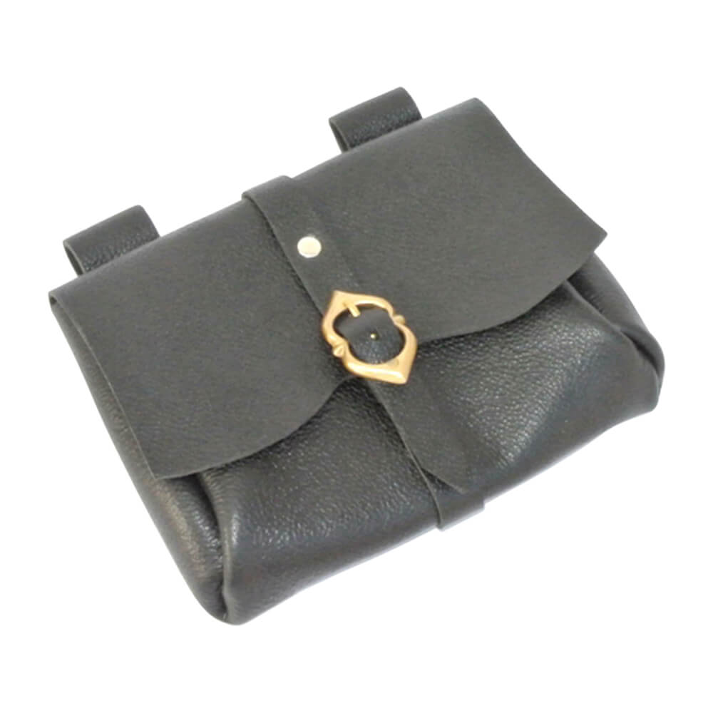 When walking around a Renaissance faire or engaging in a battle, you need a place to store those loose items and this is where the Messenger Pouch comes in handy. This simple, yet stylish, accessory is crafted from stitched and riveted leather and secures with a brass buckle and strap. For convenient carrying on a belt, a pair of belt loops have been included. Practical and complimentary to your period ensemble, this pouch is great for costumes and re-enactments. 7 3/8″ Wide x 5 3/8″ Tall (Not including belt loops) – Up to 1 1/4″ Thick