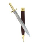 The French Model 1831 Infantry Briquet has a blade of EN45 high carbon steel and a brass hilt. The scabbard is brown leather with brass accents.