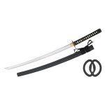 The Musashi Elite Katana from Hanwei provides a cutting sword that is economical yet authentic. Designed for multiple cuts in normal targets, these Musashi Elites Katanas features genuine Same (Rayskin) on the Tsuka, with a tightly-woven leather Tsuka-Ito. The long tang is double-pegged for security. Named for one of the most renowned swordmasters in Japanese history and featuring the famous “double ring” iron tsuba, the Musashi Elite Katana is faithful to the original down to the famous double-ring iron tsubas.