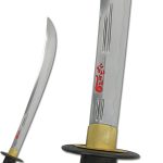 The Naginata, famed weapon of the Sohei, or warrior monks, of medieval Japan was fearsome in the hands of a skilled combatant and is today of great importance in the martial arts field. Paul Chen’s naginata, while retaining its traditional qualities, has been revised to better meet the needs of the martial arts practitioner qualified to use an edged weapon. Hand forged in 1065 high-carbon steel and edge tempered, using a traditional claying method, the naginata blade is at least the equal of the originals. Mounted on a long tang to better absorb the shock of a blow, the blade has a strong distal taper for balance and quickness. The delicately engraved tsuba features a silver butterfly motif. The one-piece staff (ebu) is very strong, featuring a traditional tear-drop cross-section for easy recognition of blade orientation and a black non-slip finish for better control of the weapon. The naginata is supplied with a wooden saya and cloth bag.