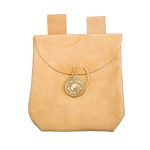 When walking around a Renaissance faire or engaging in a battle, you need a place to store those loose items and this is where the Natural Suede Leather Belt Pouch comes in handy. This simple, yet stylish, accessory is crafted from suede leather and secures with a leather cord and brass buckle. For convenient carrying on a belt, integrated belt loops have been included. Practical and complimentary to your period ensemble, this pouch is great for costumes and re-enactments. 5 1/2″ x 5 1/4″ (not including belt loops)