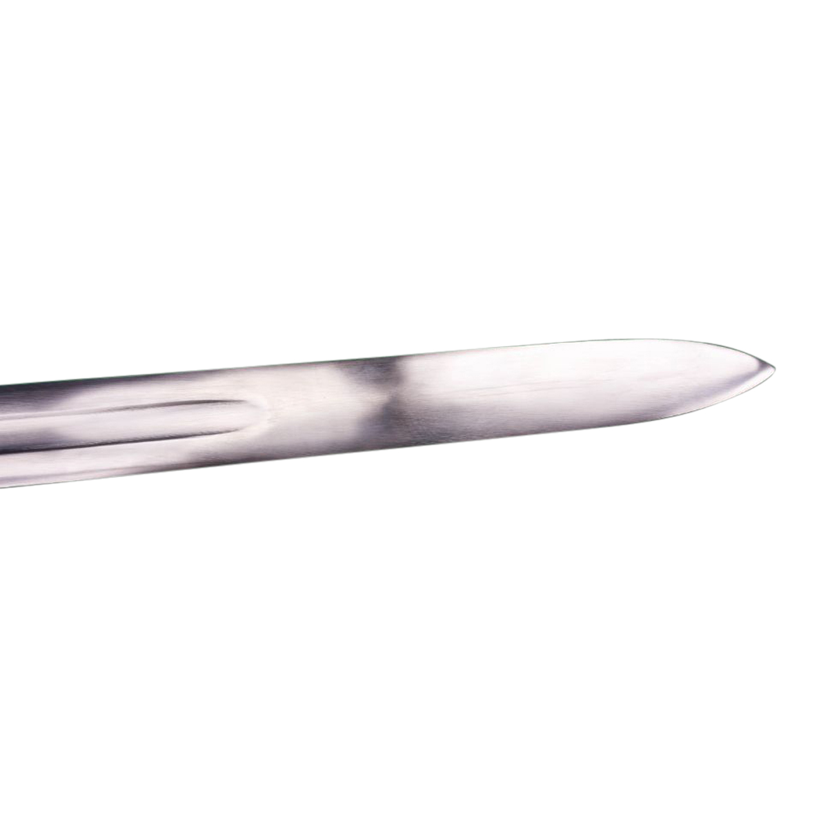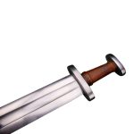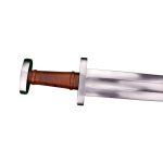 The blade of this reproduction has a hand forged blade of tempered C60 high carbon steel a steel with properties similar to 1060 high carbon steel. The guard and pommel are tough steel and the blade tang is stoutly peened over the pommel to robustly anchor the blade into the hilt. A grip wrap of tightly bound high quality leather completes the hilt. The sword is paired with a wood-core scabbard which is wrapped in stitched, high quality vegetable tanned leather. A wooden suspension slide is strongly affixed to the scabbard and allows for a sword belt or baldric to be woven through this component to allow for the sword to be worn. Belt or baldric is not included.