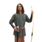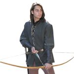 Drawing upon inspiration from one of the world’s greatest outlaws, Robin Hood, comes this wonderful Outlaw Shirt. Made from a high quality, heay cotton weave, this hunter green apparel features leather laace-up to close the front of tghe shirt and buttons at the wrists to close the cuffs. For prime protection and to blend in the crowd, as to not be spotted, this piece is sure to o the trick. Great for many costume events!