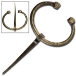 The Medieval Oval Brass Brooch is the perfect way to give your ensemble that little extra touch of style. Drawing inspiration from the Roman clasp, this type of adornment was widespread throughout Northern Europe during the Middle Ages. It was quite effective in fastening heavy tunics to guard against harsh weather. With rich design, this forged brass accessory is a shining beauty with a textured finish. Sitting on the loop is a 3 in. pin, which is held in place by the fabric which it goes through. Fitting for many garments, this brooch is sure to attract attention and is perfect for costumes, Renaissance fairs, and re-enactments.