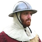 What once started out as a cap for children eventually became a widespread hat for soldiers during the Middle Ages and the Padded Coif is a reflection of what it became. Made from a pale green cotton fabric, this piece ties in front and covers the neck, making for a comfortable fit. Great addition to your medieval wardrobe.