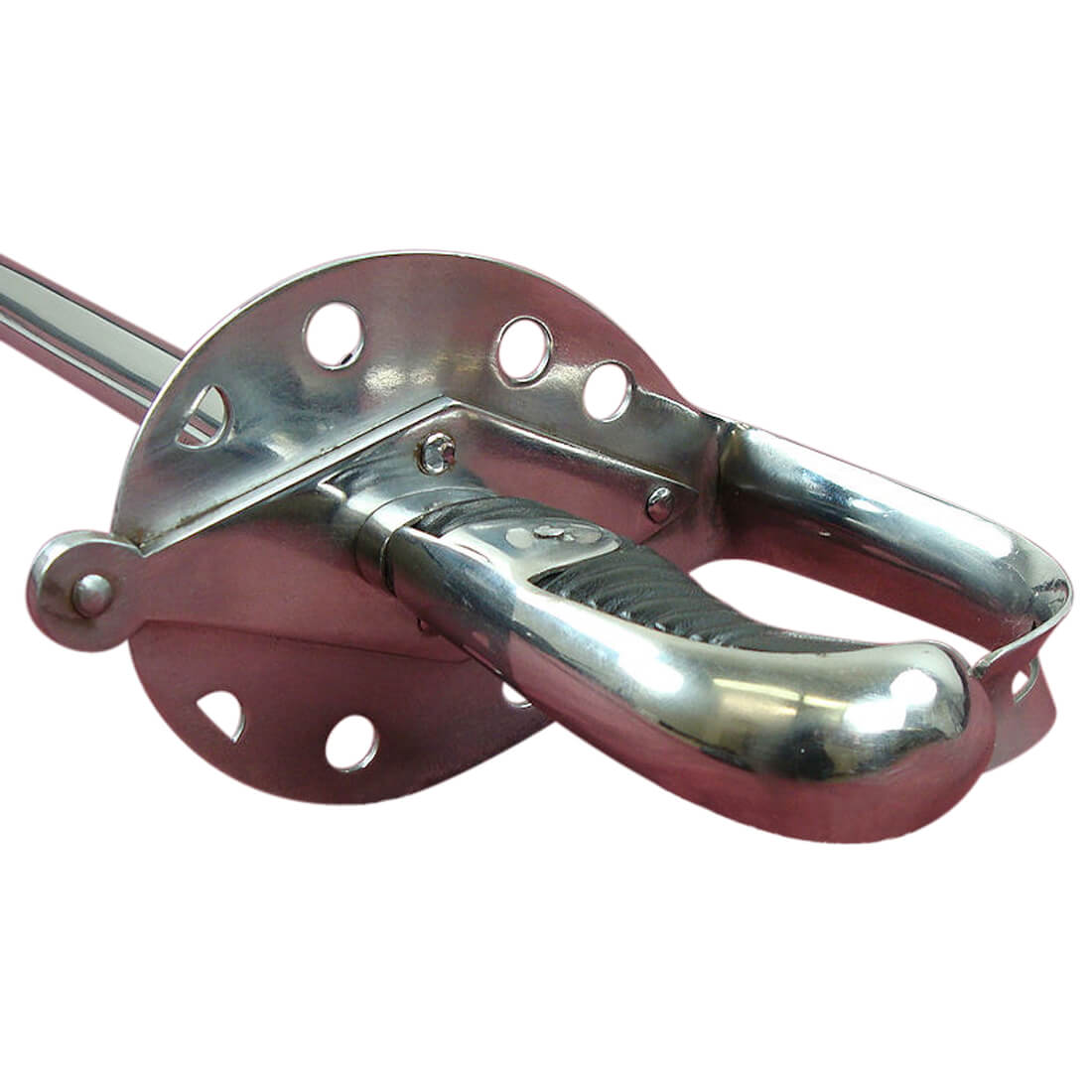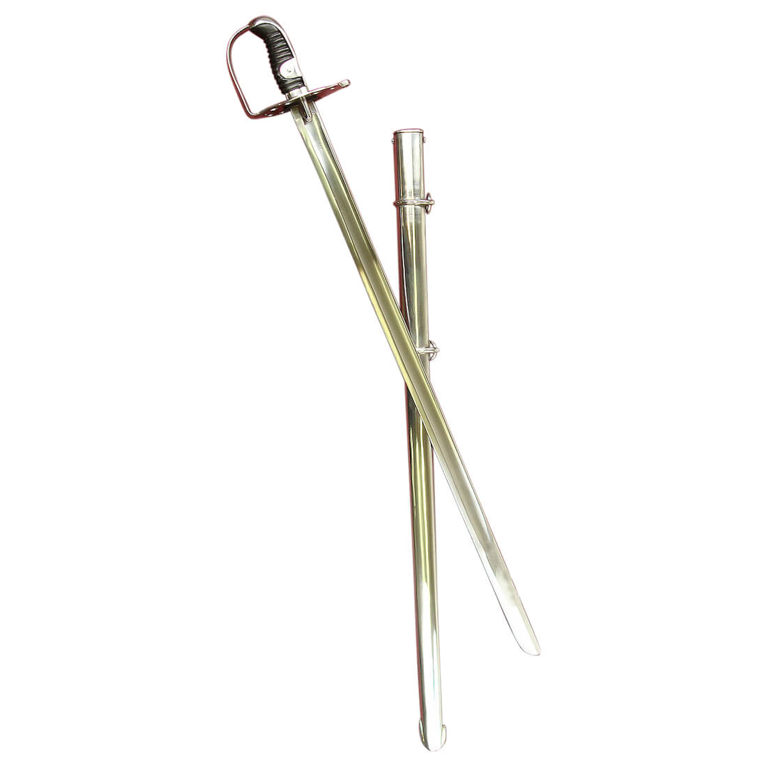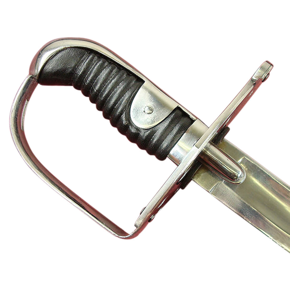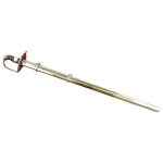 A robust backsword, the model 1796 cavalry sword was regarded as too heavy for delicate, gentlemanly swordsmanship – which was precisely why the regiments of Dragoons, Life Guards and Royal Horse Guards liked it. This 1796 Heavy Cavalry Sword blade is made from tempered high carbon steel. The hilt is of steel with a ribbed leather grip. The scabbard is of steel with ring mounts. The sword was made by Universal Swords of India.
