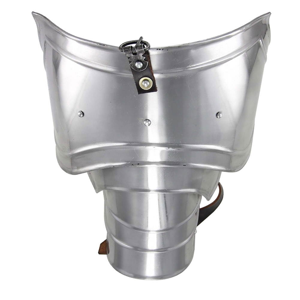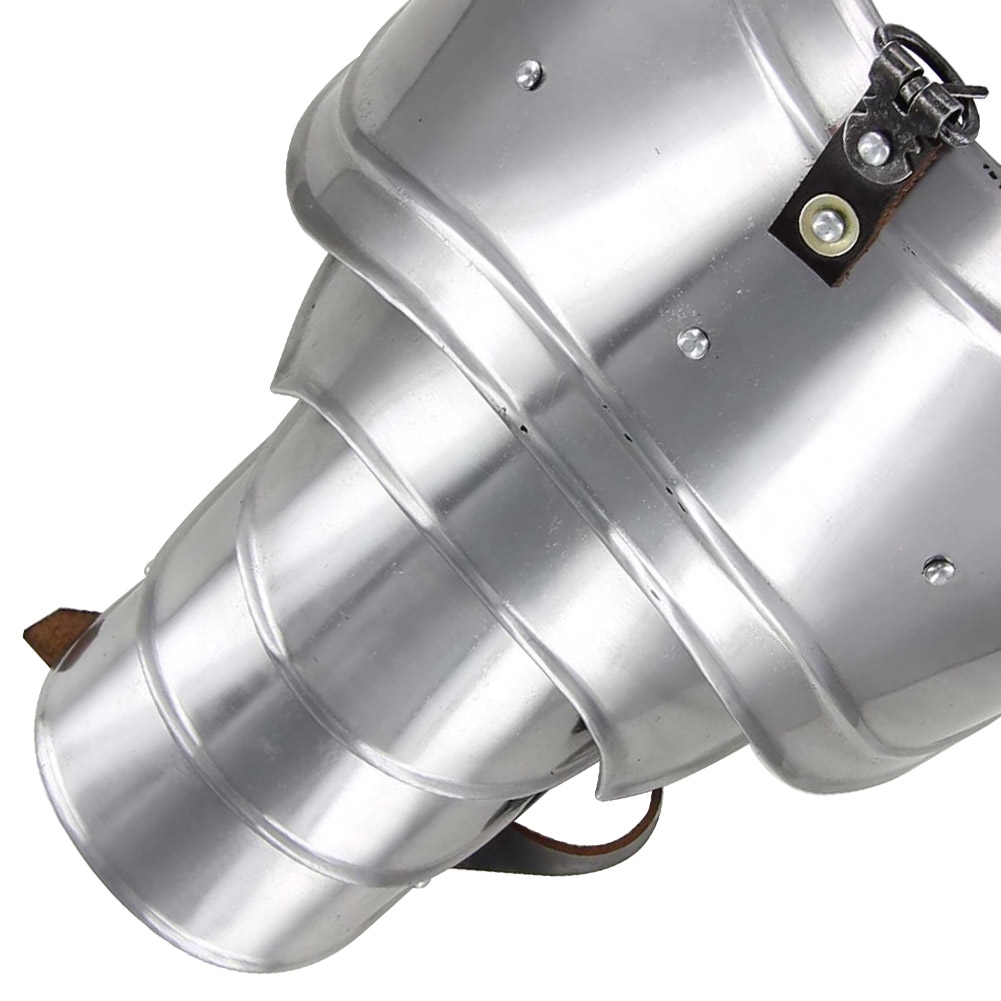 Pauldrons are made for the purpose of protecting a knights shoulders and upper arm. They evolved from the Spaulders in the 15th century. These pauldrons consist of a single large dome-shaped piece to cover the shoulder with three lames attached to it to defend the arm and upper shoulder. To secure them on they come equipped with leather straps and steel buckles. This set is made from18 gauge steel with a polished finish. They are able to withstand light training and sparing. Hand forged of high quality materials this set is perfect for Living History demonstrations and re-enactments.