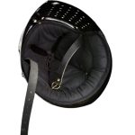 These great helms were typically worn over a well-padded coif, or a coif of mail. They could also be worn over a close-fitting steel skullcap. For additional protection these helmets could be well-padded on the interior. This fully wearable replica is crafted from riveted and weld-reinforced plates of 16 gauge steel. The interior is well padded with a suspension liner of firm padded foam which is encased within a stitched shell of durable cotton canvas cloth. It can be adjusted to trim the fit of the helmet with its integrated cord. A chin strap of durable leather with an antique-finished steel buckle secure the helm to the head.