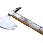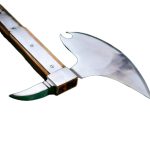 The Perrins Axe was used by medieval warriors and known for its efficiency and power. Featuring a long haft and carbon steel blade with a crescent shaped edge and curved points, this weapon’s axe head is mounted on a hardwood haft and is accompanied by a brass cap and round pommel decor. Indeed, this is truly an impressive piece.
