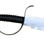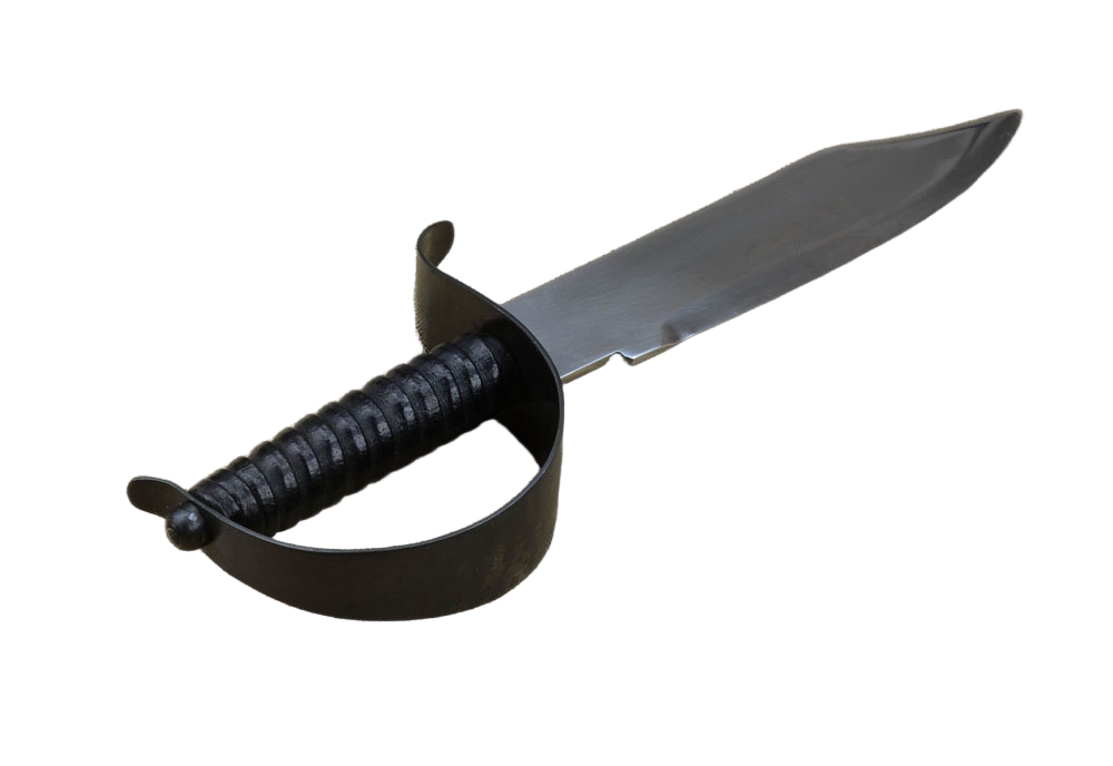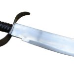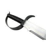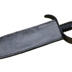 This Pirate Dagger is nearly a short Cutlass – ideal for cramped fighting on deck or as an off-hand parrying dagger for a skillful Pirate duellist. The blade is high carbon steel. The guard is blackened steel and the wooden grip is finished with a tight leather wrap. A sheath of thick leather is included.