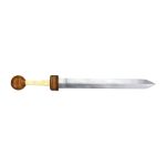 The Pompeii Gladius dates back to the days of ancient Rome and is a powerful piece to behold. Featuring a carbon steel blade with a full tang, it has a wood and bone hilt and a leather wrapped wood scabbard with brass accents. Great for reenactments, costumes, and collections.