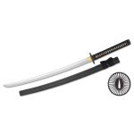 The Practical Plus Elite Katana provides a cutting sword that is economical while featuring traditional fittings and construction methods. Designed for multiple cuts in normal targets, these Practical Plus Elites Katana features genuine Same (Rayskin) on the Tsuka, with a tightly-woven cotton Tsuka-Ito. The long tang is double-pegged for security. The fittings of the Practical Plus Katana are decorated in a Japanese Dogwood motif with dragon menuki, and the handsome iron Tsuba features a “sunburst” design with a brass habaki.