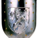 Note: This shield is for display only and comes with a wall hanging chain on the back. Overall Dimension: 62 x 43 cms – 24 x 17 inches