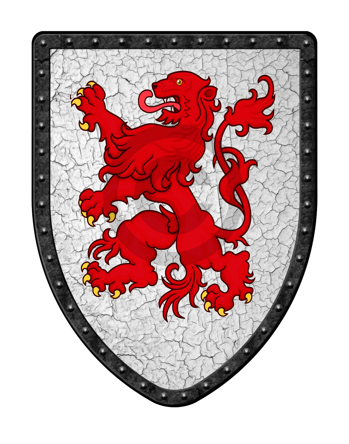 This battle-ready Red Lion Shield features a new technology of digital printing on our 16 gauge steel blank shields! Advantages of digital printing include more accurate colors, detailed and advanced image creation that is consistent vs hand-painting, and a long lasting high quality surface. This shield is created by a process of super high resolution printing on a high grade canvas, bonded to the shield, and then coated for protection.