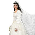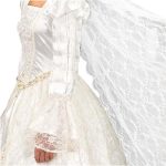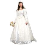The Renaissance Wedding Gown and Veil is an exquisite selection that is sure to make your wedding or costume event very special! Layered with polyester satin, this beauty is decorated with homemade flowers and artificial pearls, accented by floral lace. This gown also features a lace-up back and white and gold belt. A 60″ long veil is included as well for a complete look. With style and grace, this dress is one that promises to leave a lasting impression on the wearer and on those who see it.