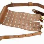 The Roman belt was used for decorative purposes and provided limited protection. Usually made out of brass, iron, and leather, it also served as place to hang the Roman sword (gladius). Our replica is superb, made of genuine leather and features brass decorative fittings.