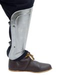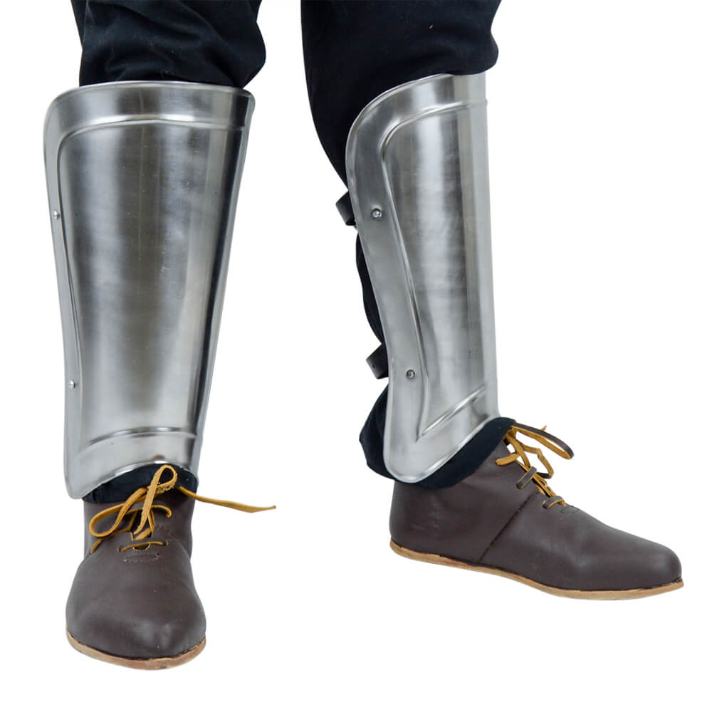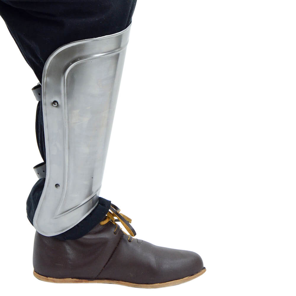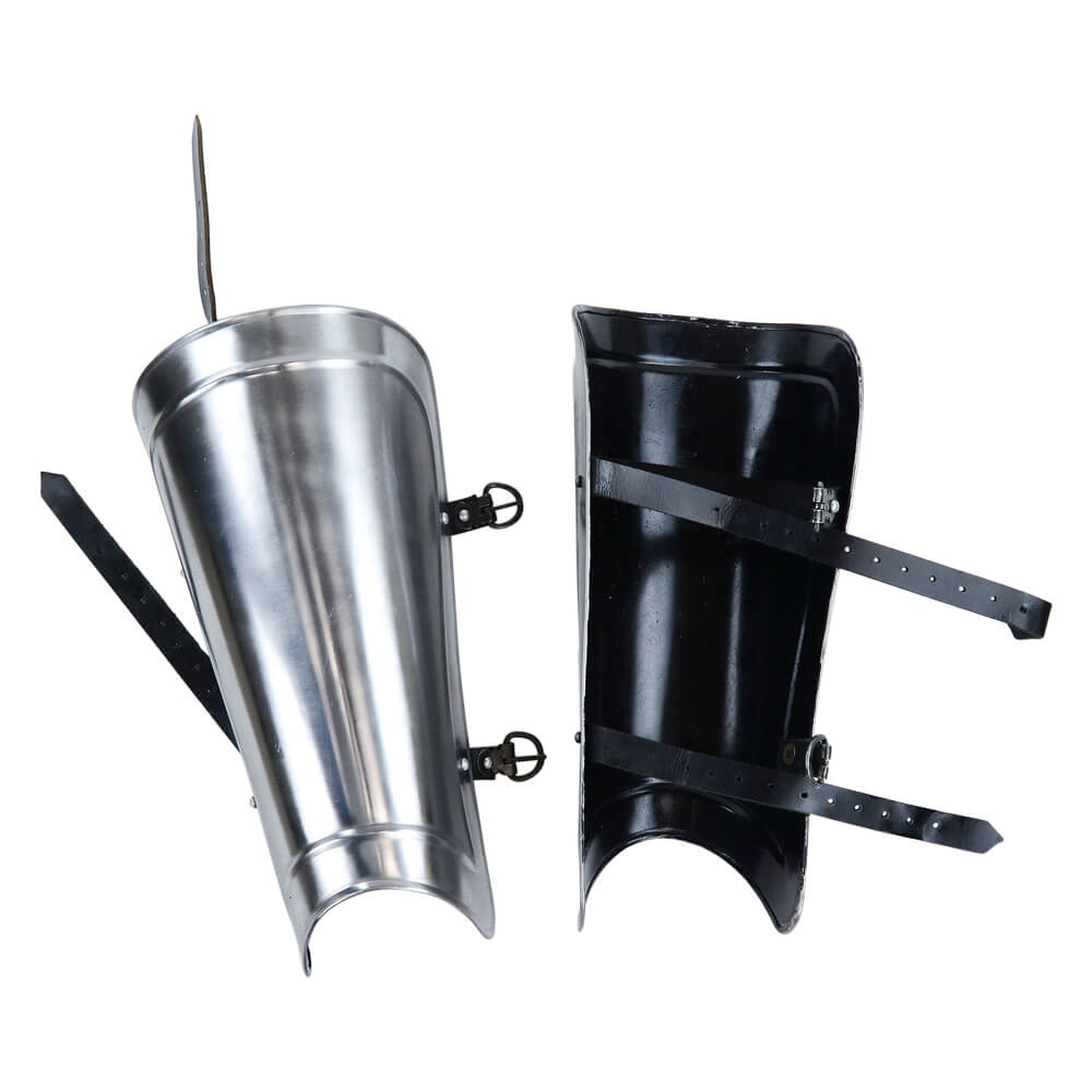When engaging in battle, it is important to ensure you have proper leg protection and this is where the Ridged Greaves promise to be effective. Modeled after the protective armor that has been around since the days of ancient Greece, this set is constructed from 20 gauge steel with a blackened interior. A comfortable and secure fit is ensured with the inclusion of adjustable leather straps and antiqued steel buckles. With authentc design, these greaves are perfect for costumes and re-enactments. Overall Length: 15 1/2”