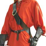 The Right Handed European Baldric has had a long standing, dating from biblical times into the 17th century. It provided great support with a shoulder strap to share the weight of the sword. This reproduction features oil tanned black leather and a silver buckle, making it convenient and comfortable to carry many types of swords. Frog is left open so you can stitch it closed to fit any sword size. Crafted of oil tanned leather