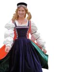 The Robe du Soir is a customized 1600 gown that is made of three different pieces. It is comprised of an Outer piece, an Inner piece, and a blouse. This gown features its unique design where there are variety of ways on how you could wear this dress. You may combine the inner and outer piece, the blouse and inner piece, or the blouse and the outer piece. A frilly skirt is attached to the corsage. The gown is made from 100% cotton velvet. In the picture, a blouse with a crumpled look complements the dress. In this item, the outer piece is layered with satin completely while the inner piece is partially layered only with satin. This plush gown comes in different colors.
