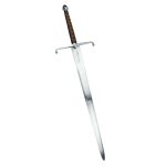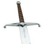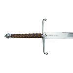 This Robert the Bruce Greatsword has a blade crafted from high carbon steel. The pommel and crossguard are steel and the wood grip is bound in leather and then finished with leather strips.