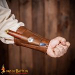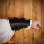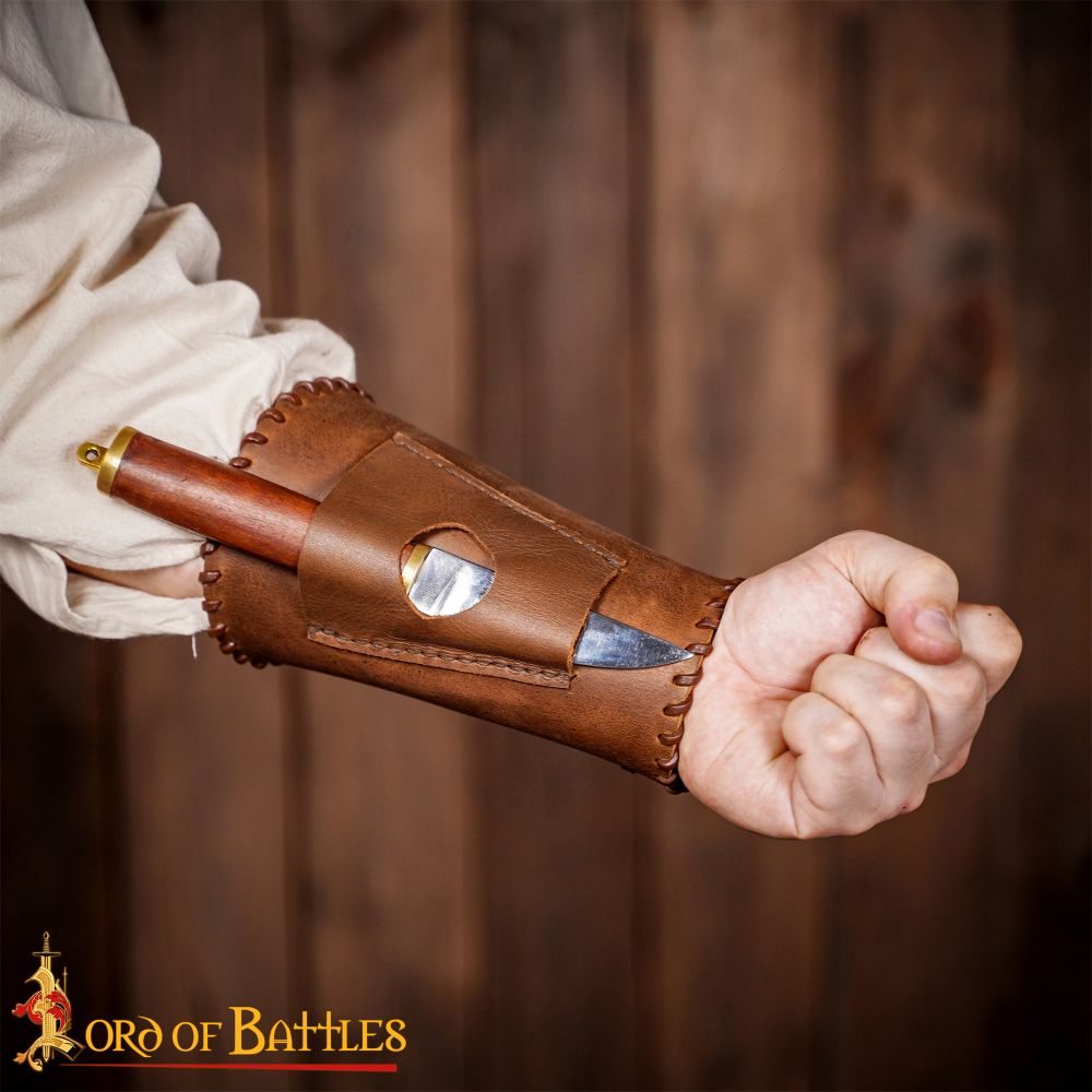 Out on a royal pursuit with the King? Don these regal leather bracers, equipped with a knife holder, to make an impression like never before!