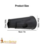 Painstakingly handcrafted from genuine buff leather, these bracers are extremely robust and hard-wearing. For an adjustable fit, a pair of genuine leather straps with pure brass buckles is provided. Each bracer has a length of approx. 28 cm, upper width of approx. 18.5 cm, and lower width of approx. 16 cm.
